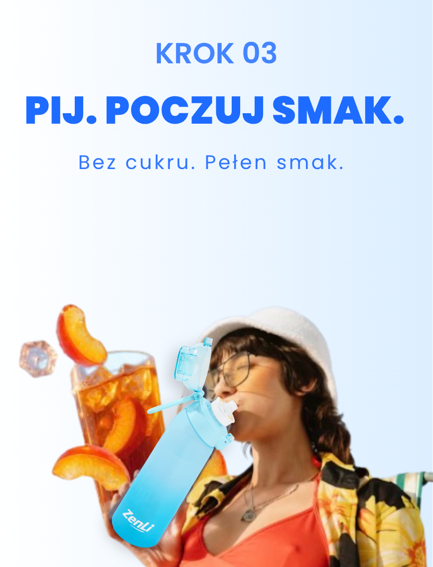 Zenli nie dodaje nic do wody. Smak odczuwasz dzięki aromatycznej kapsułce, która działa przez zapach.